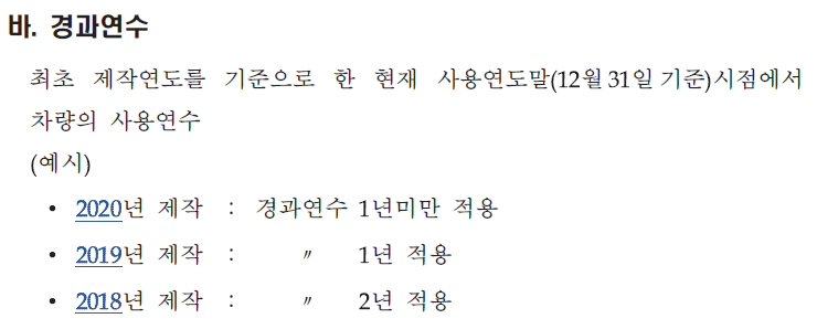 중고 오토바이 경과연수는 제작 연식에 따라 결정합니다. [예] 2019년 제작 모델을 2020년형으로 구매했다면 잔가율을 구할 경우 2019년 형식부터 계산하게 되는 것이죠. (자동차 동일)