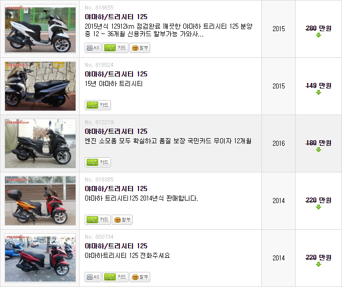 평균 중고 오토바이 거래 가격은 190만 원대로 볼 수 있는데요.